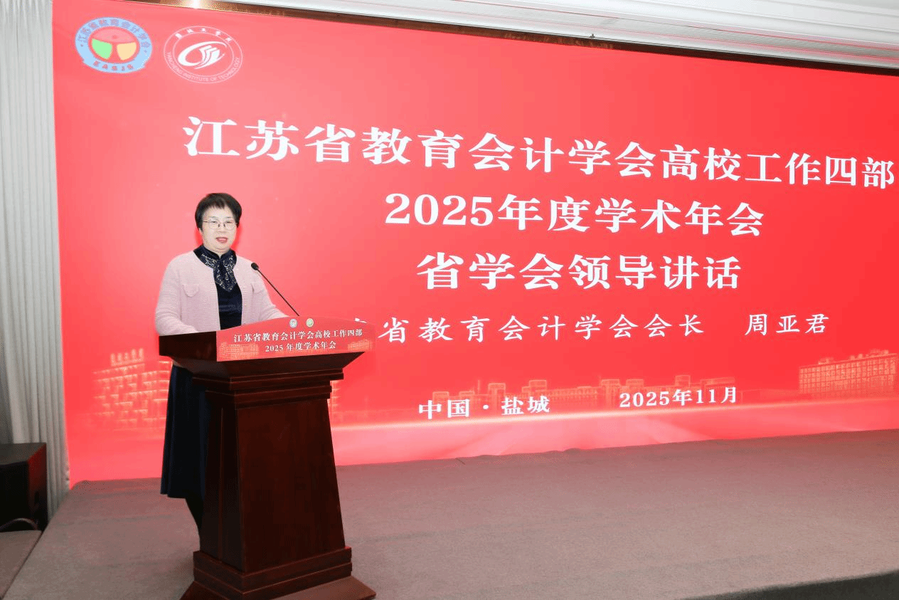 11月14日,江苏省教育会计学会高校工作四部2025年学术年会在盐城举办,省教育会计学会会长、省教育厅原二级巡视员周亚君,我校党委副书记、校长邵荣出席,来自徐淮盐连宿五个地区二十多所院校财务部门负责人及业务骨干70余人参会。本次年会由江苏省教育会计学会高校工作四部主办、盐城工学院承办。